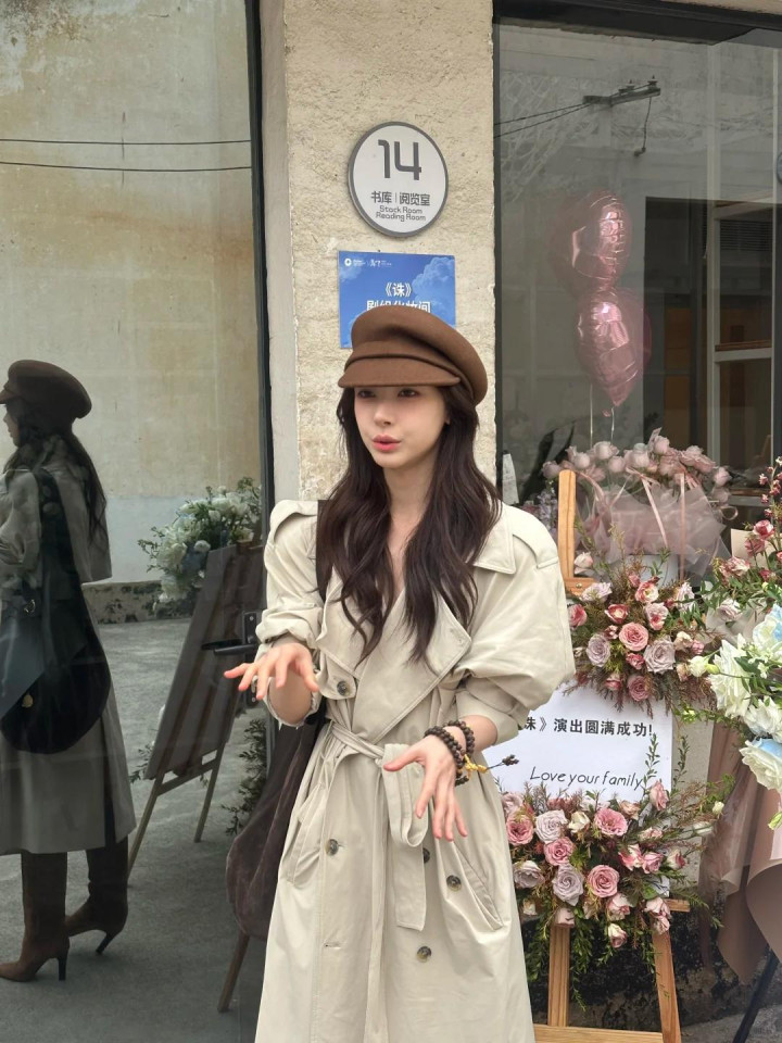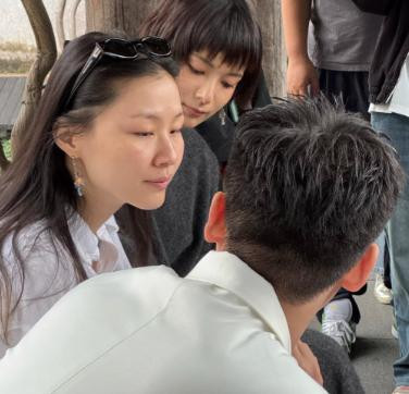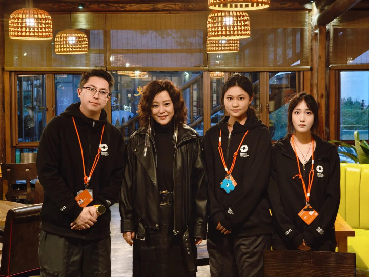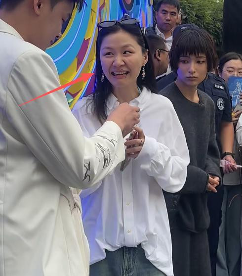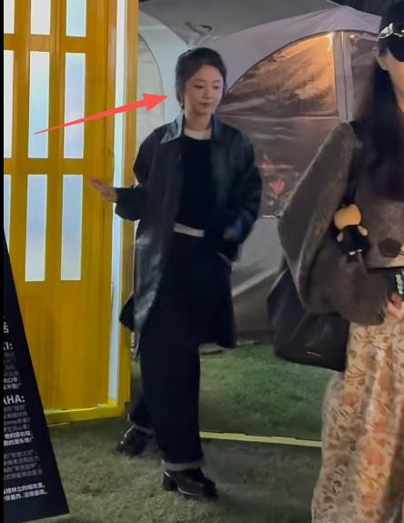 这次来参加戏剧节穿的很日常,皮衣搭配牛仔裤,妥妥邻家大姐姐穿搭,从背后看还以为是女大学生呢。